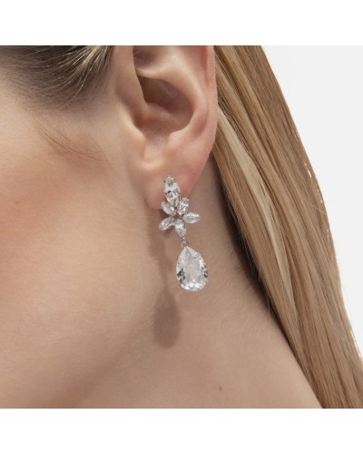 Pendientes Victoria Cruz de plata de color blanco en forma de flor A4516-07HT
