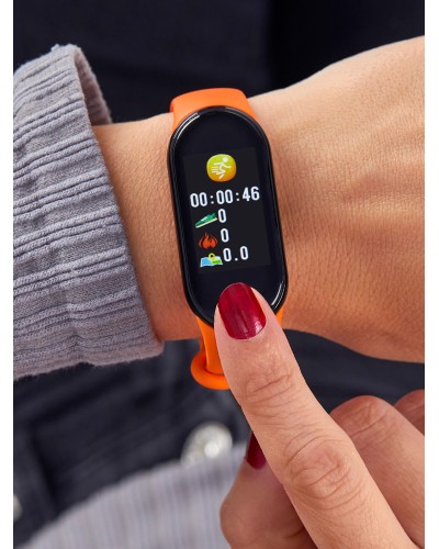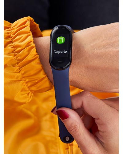 Smartwach para mujer con correa de silicona color azul oscuro + correa de regalo de silicona color naranja. Entre sus funciones destacan: