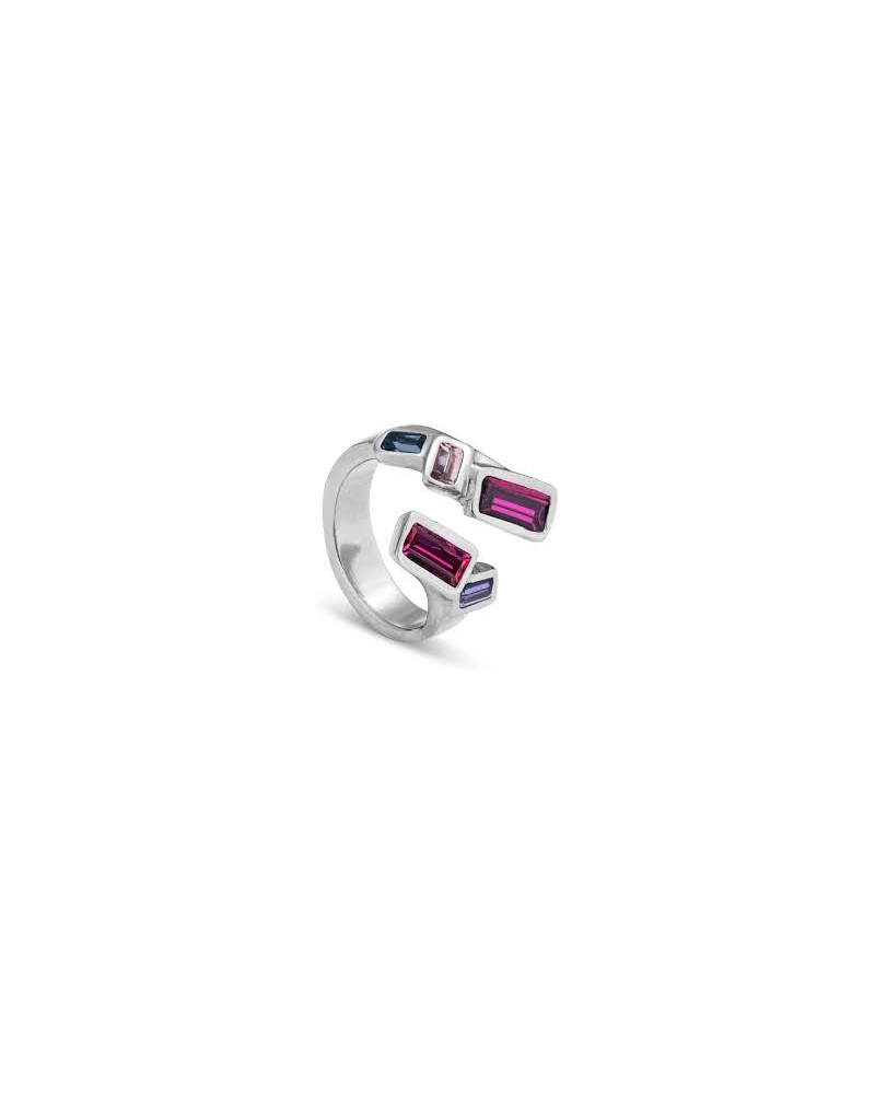 Anillo Uno De 50 Glitter By Glitter ANI0658MCLMTL15, de metal bañado en plata. Decorado con cristales facetados multicolor. Equivale a una talla 15.